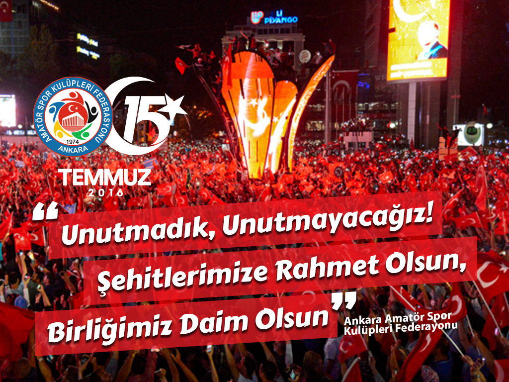 Haberler 13 Temmuz 201713 Temmuz 2017 Beğen Tweetle +1 PinleUnutmadık, unutmayacağız! Şehitlerimize Rahmet Olsun, Birliğimiz Daim Olsun. ANKARA AMATÖR SPOR KULÜPLERİ FEDERASYONU