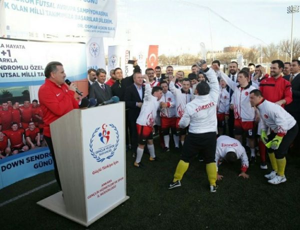 Ankara 19 Mayıs Stadı dış sahalarda oynanan, Aile ve Sosyal Politikalar Bakanı Fatma Betül Sayan Kaya’nın başlama vuruşunu yaptığı müsabakada Down Sendromlu Özel Sporcular Futsal Milli Takımı ile Başkanımız Kandazoğlu’nun da yer aldığı Bakanlar, Bakan Yardımcıları, Milletvekilleri ve basın mensuplarından oluşan takımı 9-4 mağlup etti.