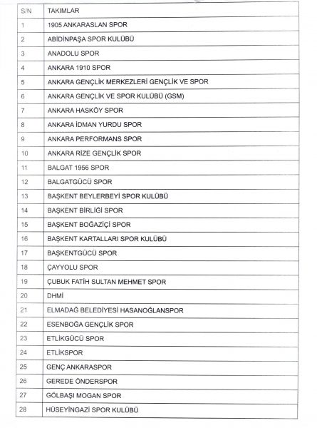 2024-2025 Futbol sezonunda 2. Amatör Ligine katılacağını bildiren takımlarımızın isim listesi aşağıda belirtilmiştir.