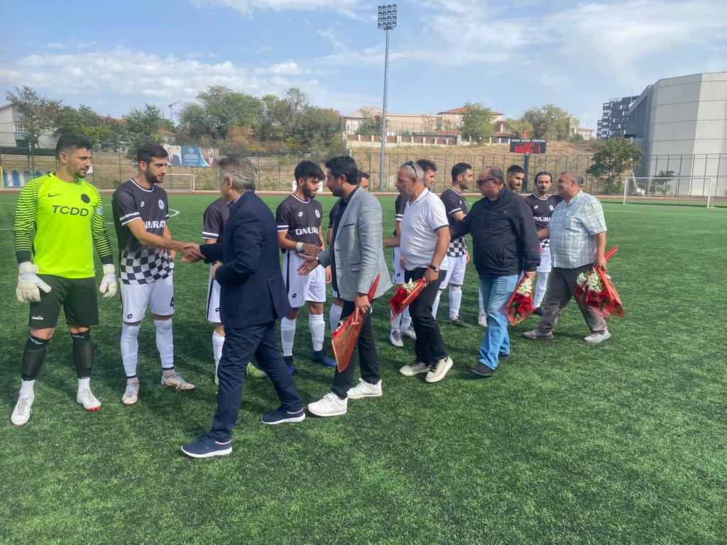 Federasyon Başkanımız Sn. Murat Kandazoğlu ile birlikte Yönetim Kurulu Üyelerimiz Sn. Muammer Bostan, Sn. Fatih ANAZ, Sn. Cengiz Albayrak ve Sn. Yusuf Kılınç Yenimahalle Hasan Doğan Stadında Anadolu Atletik Spor – Demirlibahçe Spor kulüpleri arasında oynanacak müsabaka öncesinde yeni sezonun hayırlı olması temennisinde bulunarak, hakem, saha komiseri ve takım kaptanlarına çiçek takdim etmişlerdir.
