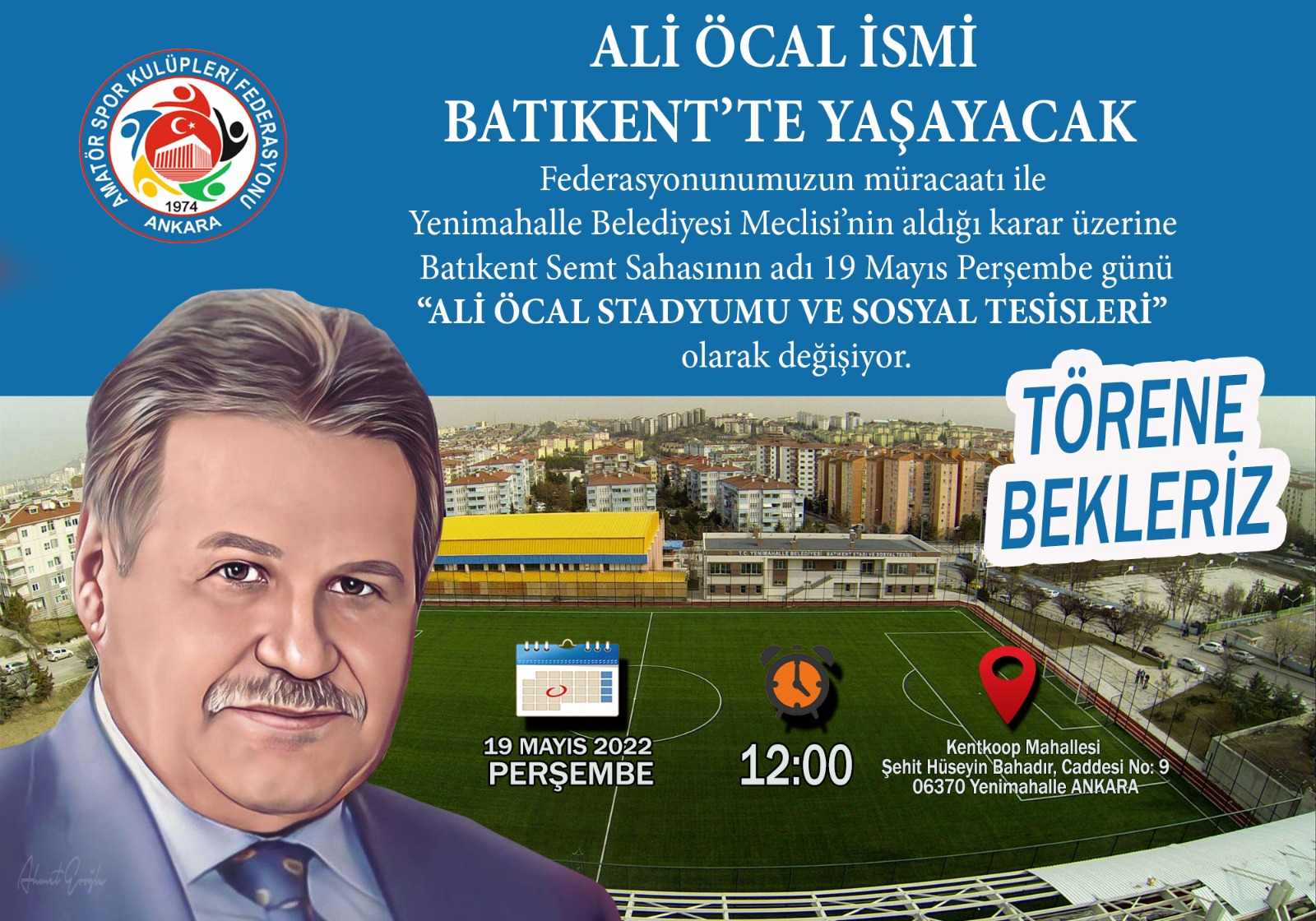 Federasyonumuzun talebi üzerine Yenimahalle Belediye Meclisi’nin aldığı kararla Batıkent Semt Sahasının adı  “ALİ ÖCAL STADYUMU VE SOSYAL TESİSLERİ “olarak değişmiştir.