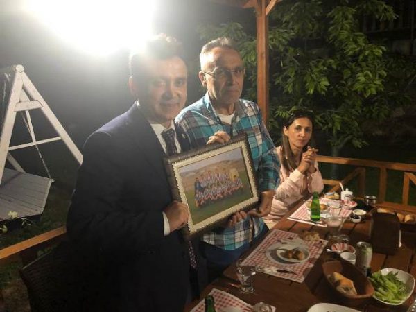 Ayaş Belediye Başkan Yardımcısı ile yakın ilçelerde yer alan spor kulüplerimizin başkanlarının ve yöneticilerinin de katıldığı iftar yemeğinde, Ayaş Spor Kulüp Başkanı Mehmet Yüksel Kirazdibi geçmiş yıllarda Ayaş Spor Kulübünde futbol oynayan Başkanımız Kandazoğlu’na hatıra fotoğrafı takdim etmiştir.