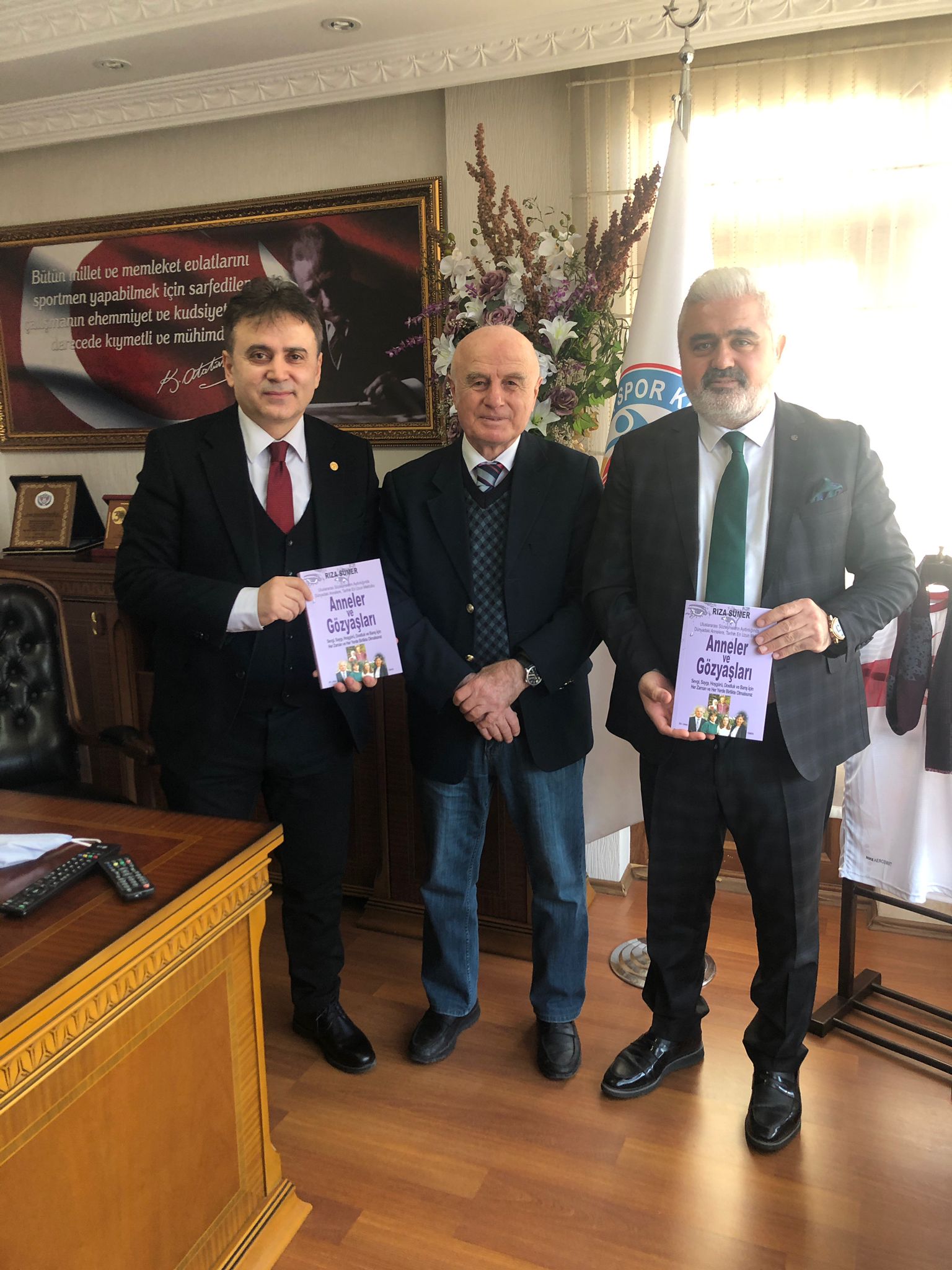 Ziyarette Sayın Rıza Sümer en son çıkarmış olduğu “Anneler ve Gözyaşları” kitabını imzalayarak Başkanımız Kandazoğlu’na ve Sayın Fatih Cürebal’a takdim etmiştir.