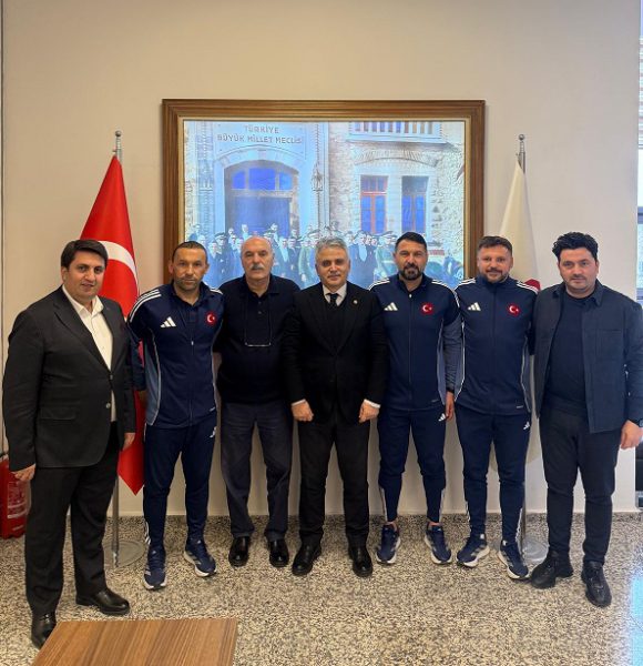Tokyo 2025 Deaflympics’te Olimpiyat Şampiyonu olan İşitme Engelliler Erkek Futbol Milli Takımızın Teknik Direktörü Sn. Ramazan Karacif , antrenörleri Sn. Serhat Ağbaba ve Sn. Mehmet Bala Federasyon Başkanımız Sn. Murat Kandazoğlu’nu, ziyaret ederek isminin yazılı olduğu milli formayı hediye etmişlerdir.